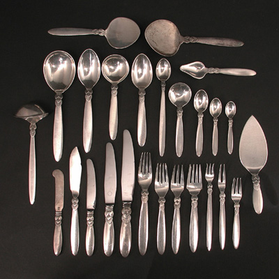 Lot 150. Georg Jensen Danish sterling silver 161 piece flatware service in the Cactus pattern. Price Realized $8,225 |
