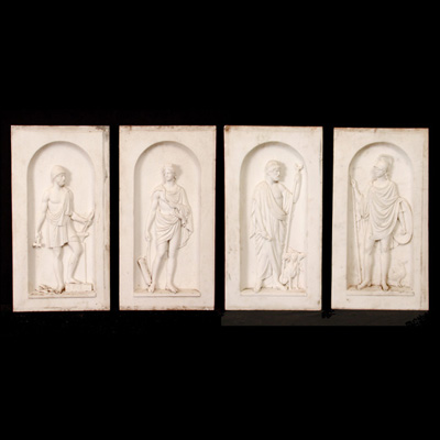 Lot 530. Set of four marble 19th c. bas-relief panels, featuring four Greek mythological characters. Price Realized $5,000 |