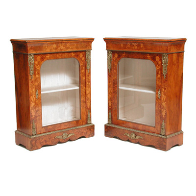 Lot 274. Pair of 19th c. English cabinets with floral marquetry and ormolu mounts. Price Realized $4,400 |